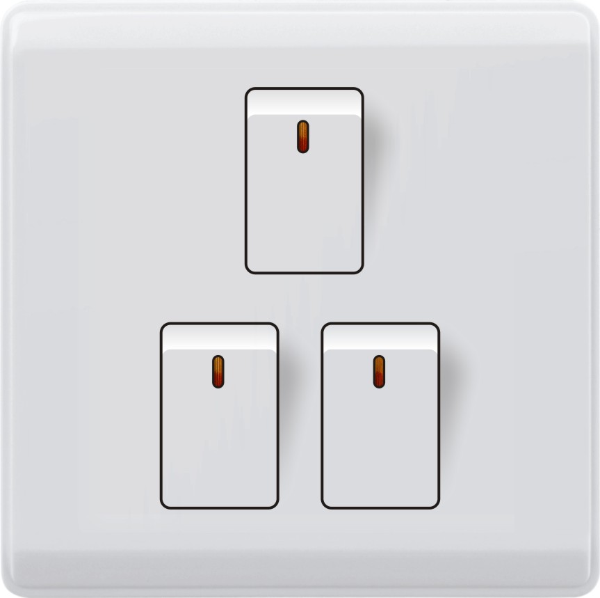In the UK, there are mainly three types of wall switches and sockets, including single, double, and triple. Single switches or sockets have one outlet, double switches or sockets have two outlets, and triple switches or sockets have three outlets.